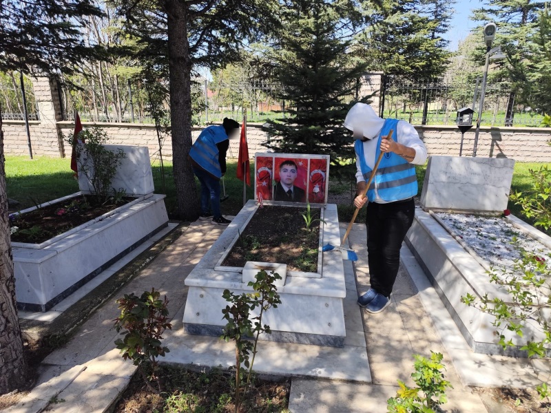 Bu kapsamda Bolvadin Şehitliği’nde yükümlülerimiz tarafından temizlik çalışması gerçekleştirilmiş, ardından manevi rehberlik biriminde görevli din hizmetleri uzmanı tarafından dualar edilmiştir.