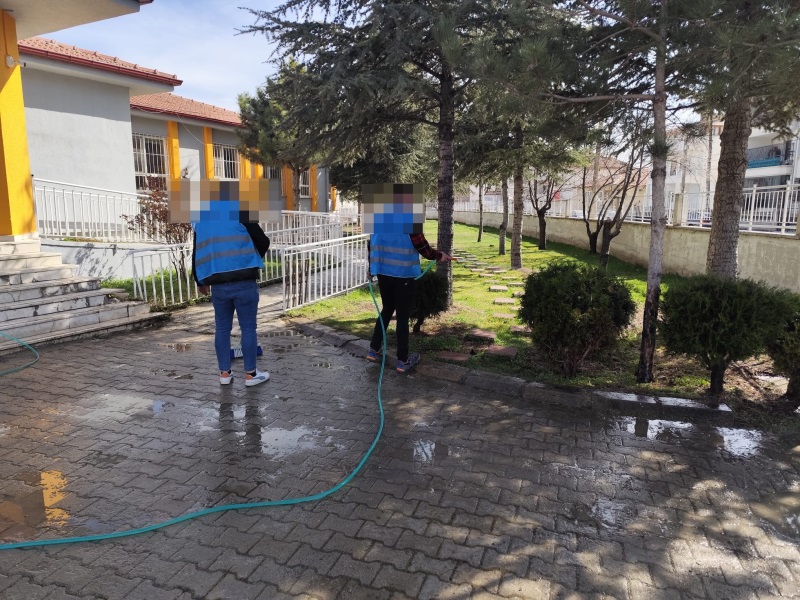 Denetimli serbestlik uygulamaları kapsamında, ara tatil sürecinde kamu yararına yönelik çalışmalar aralıksız devam etmektedir. Bu çerçevede, denetim ekibi gözetiminde İlçe Millî Eğitim Müdürlüğü ile iş birliği içerisinde Şehit Teğmen Muzaffer Gümüş Özel Eğitim Uygulama Okulu’nda yükümlüler tarafından bakım ve temizlik çalışmaları gerçekleştirildi.