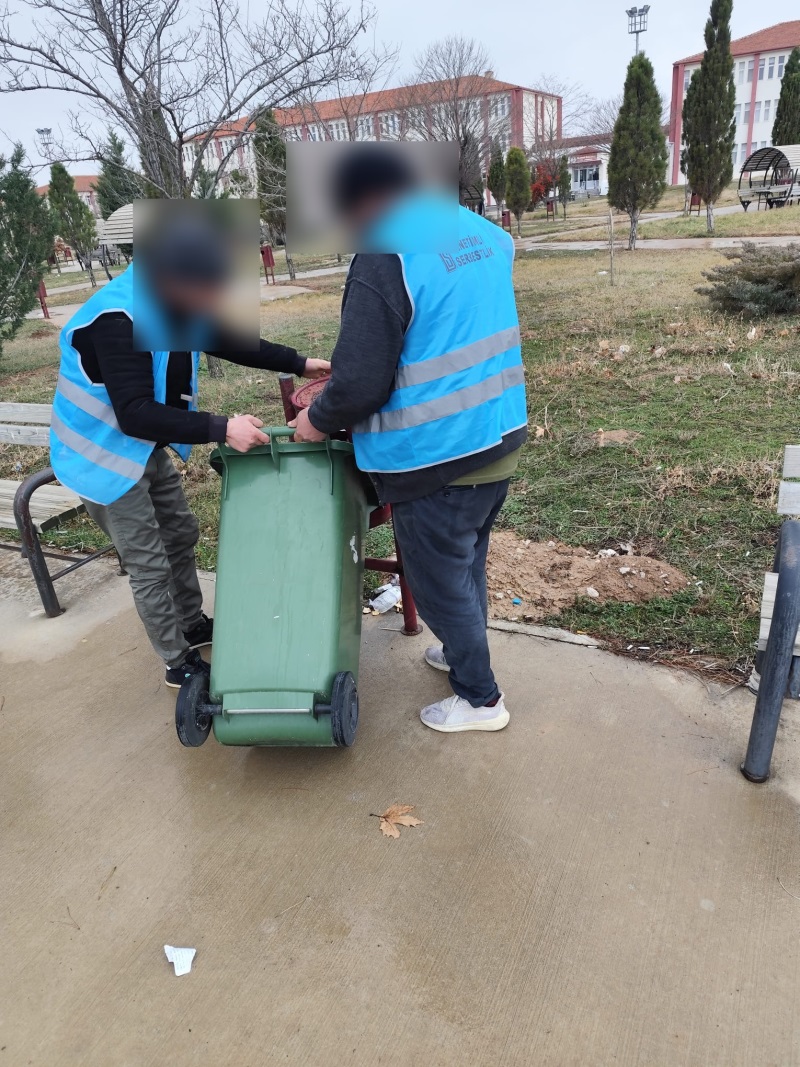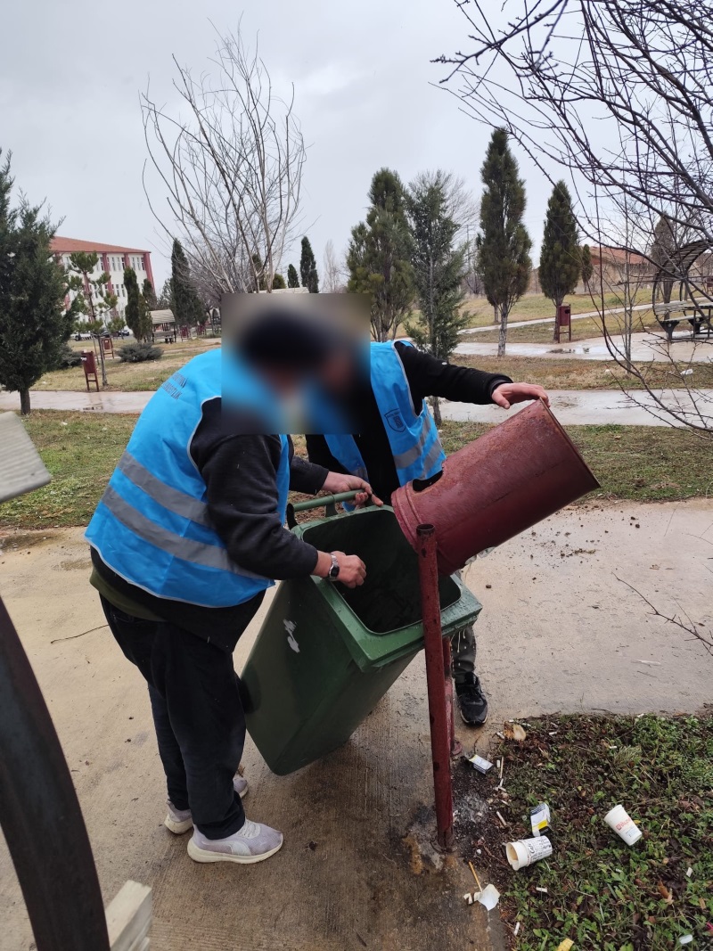 Denetim ekibimizin gözetiminde yükümlüler tarafından yürütülen faaliyetle, kampüs genelinde çevre düzeni ve temizliğine katkı sağlandı. Çalışma; yükümlülerin çevreye duyarlılıklarını artırmayı, toplumsal sorumluluk bilinci kazanmalarını ve topluma uyum süreçlerini desteklemeyi amaçlamaktadır.
