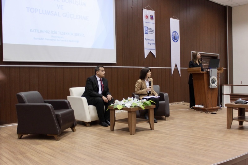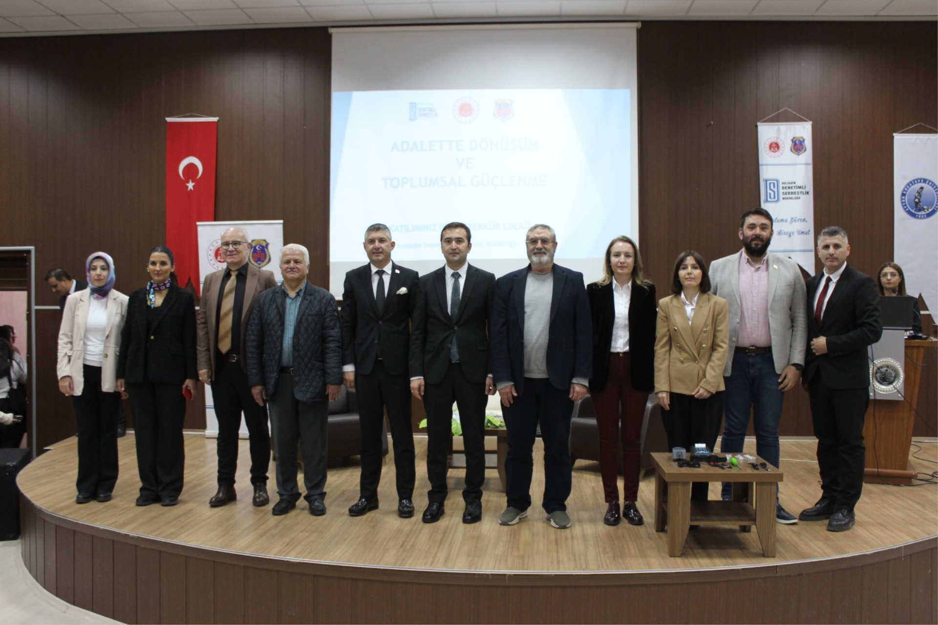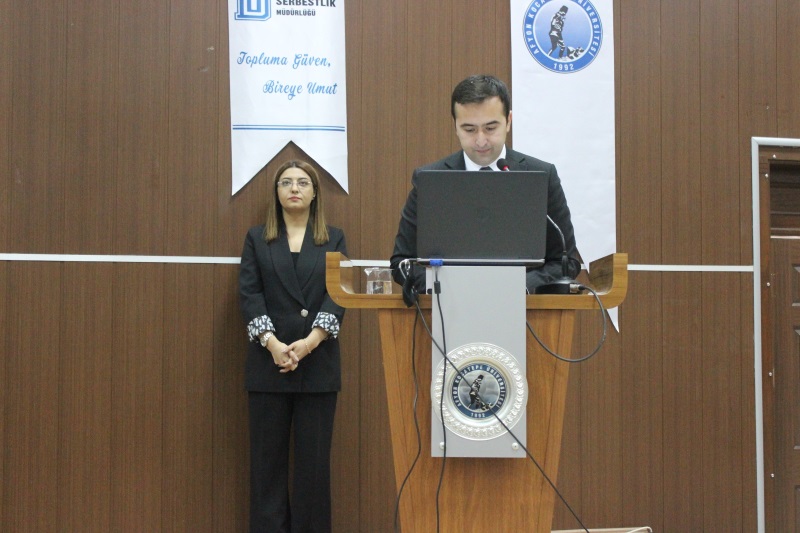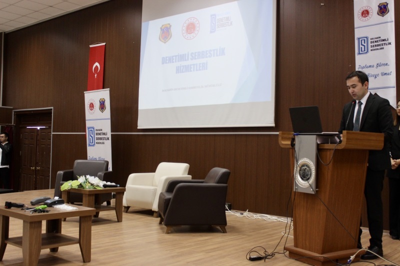 Konferans sunumu, Denetimli Serbestlik Memuru Leyla Şahin tarafından gerçekleştirildi. Şahin; denetimli serbestlik süreçleri, rehberlik–iyileştirme çalışmaları, yükümlülere yönelik programlar, elektronik kelepçe sistemi, alkolmetre uygulamaları ve kurumun topluma kazandırma misyonu hakkında detaylı bilgiler paylaştı.